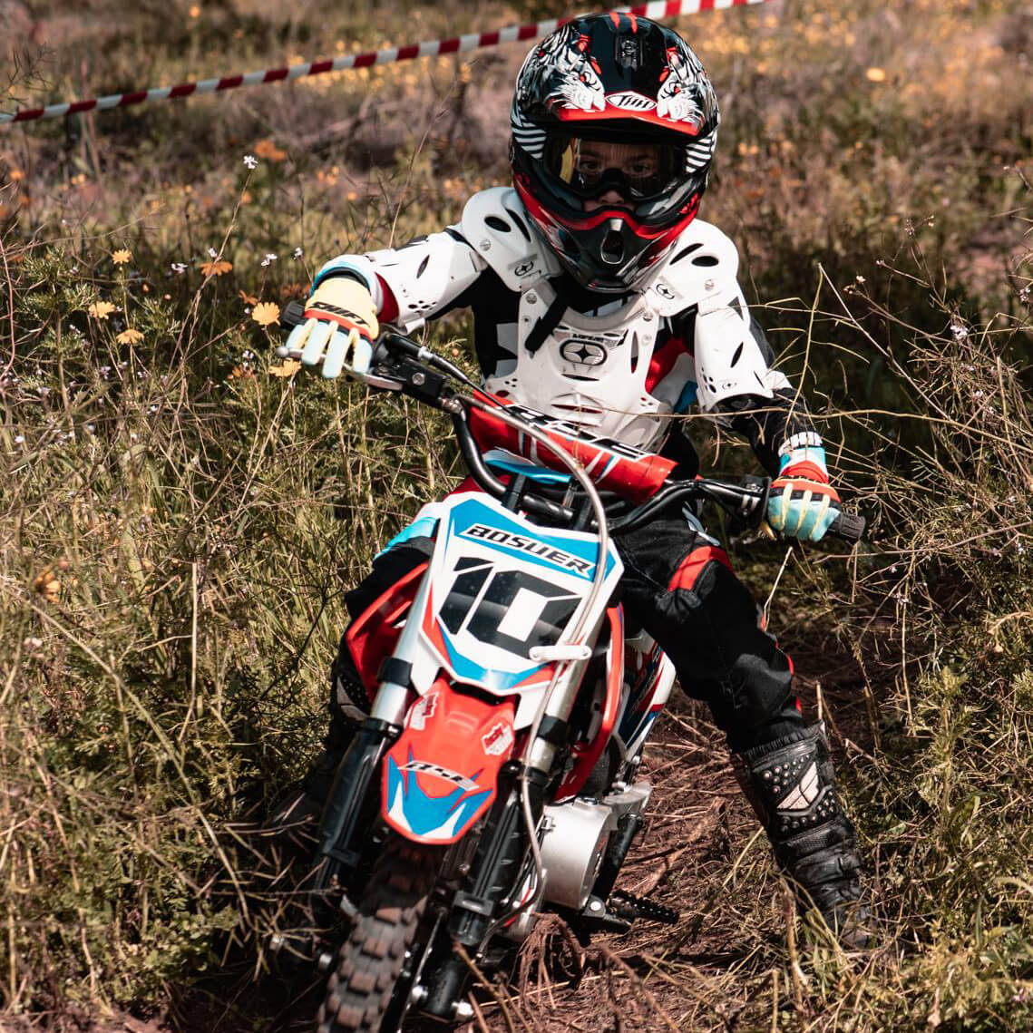Les motos cross 50cc Bosuer sont équipées de moteurs 4 temps puissants, économes en carburant, fiables et faciles à entretenir. Elles offrent une accélération progressive avec limiteur de gaz, garantissant une vitesse maîtrisée.