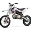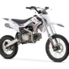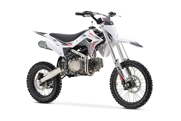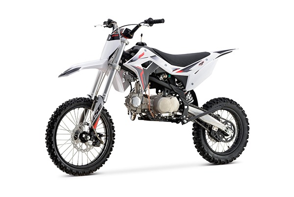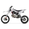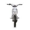Cette dirt bike 125cc reçoit des roues de 17 pouces à l’avant et 14 pouces à l’arrière, ainsi qu’une fourche avant de 770 mm pour une bonne garde au sol et un meilleur passage des bosses et des ornières. Les freins à disque (étrier 2 pistons à l’avant, 1 piston à l’arrière) assurent un freinage efficace quand il le faut. Avec un poids d’environ 150 à 180 lbs, elle reste facile à manœuvrer sur les chemins ou lors des entraînements type motocross. Il est également possible d’upgrader le moteur jusqu’à 190 cm³ pour plus de sensations.