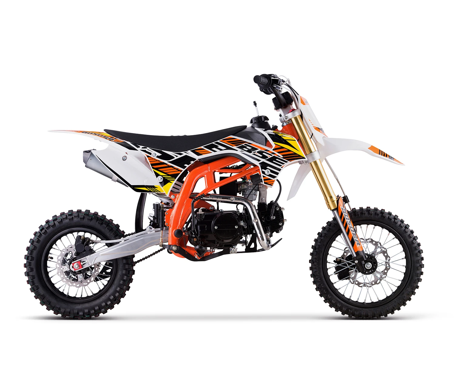 | Moteur : | 125 cm³, refroidi par air, boîte 4 vitesses, 6,5 kW à 7 000 tr/min, démarrage au kick |