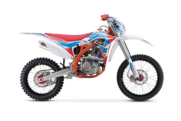 Cadre : cadre dirt bike grand format en acier avec biellettes (linkage), bras oscillant en alliage