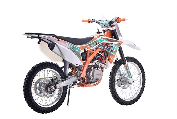 La J4 est une moto grand format de la série dirt bike BOSUER, conçue comme une « dual bike » (usage mixte). Elle est équipée d’un moteur ZS CB 230, 4‑temps refroidi par air, avec démarrage électrique et au kick. Avec ses 12 kW, le moteur est stable et facile à contrôler.